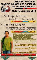 Marichuy, como le decimos con cariño, ella es nuestra vocera, quien junto con las concejalas y concejales del Concejo Indígena de Gobierno recorrerán todo el territorio mexicano para hablar y escuchar la voz de los pueblos más olvidados, marginados y despreciados de nuestra patria, como los pueblos originarios que somos, o como nos dicen con desprecio “pueblos indios”.